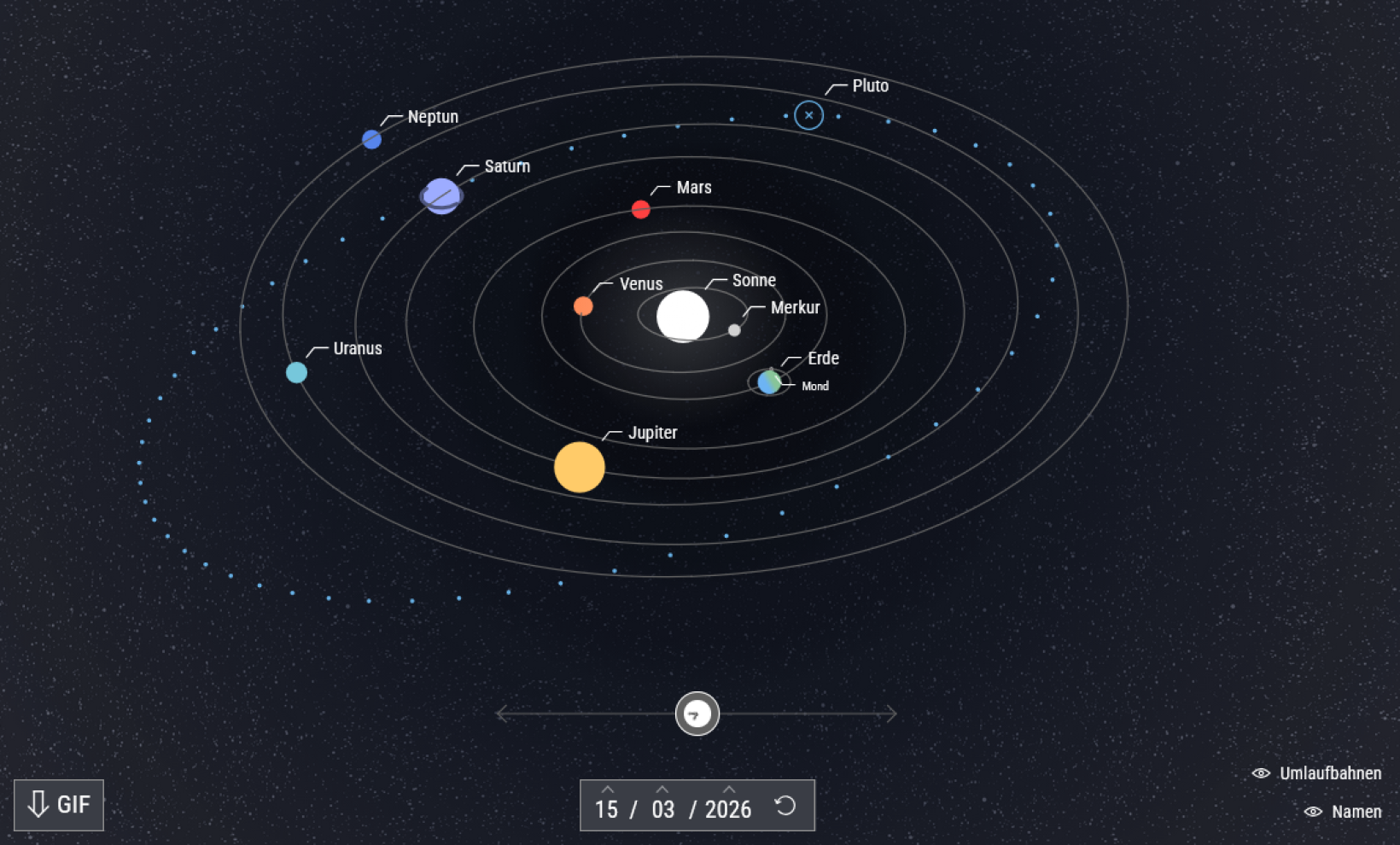 Das Sonnensystem am 15. März 2026: