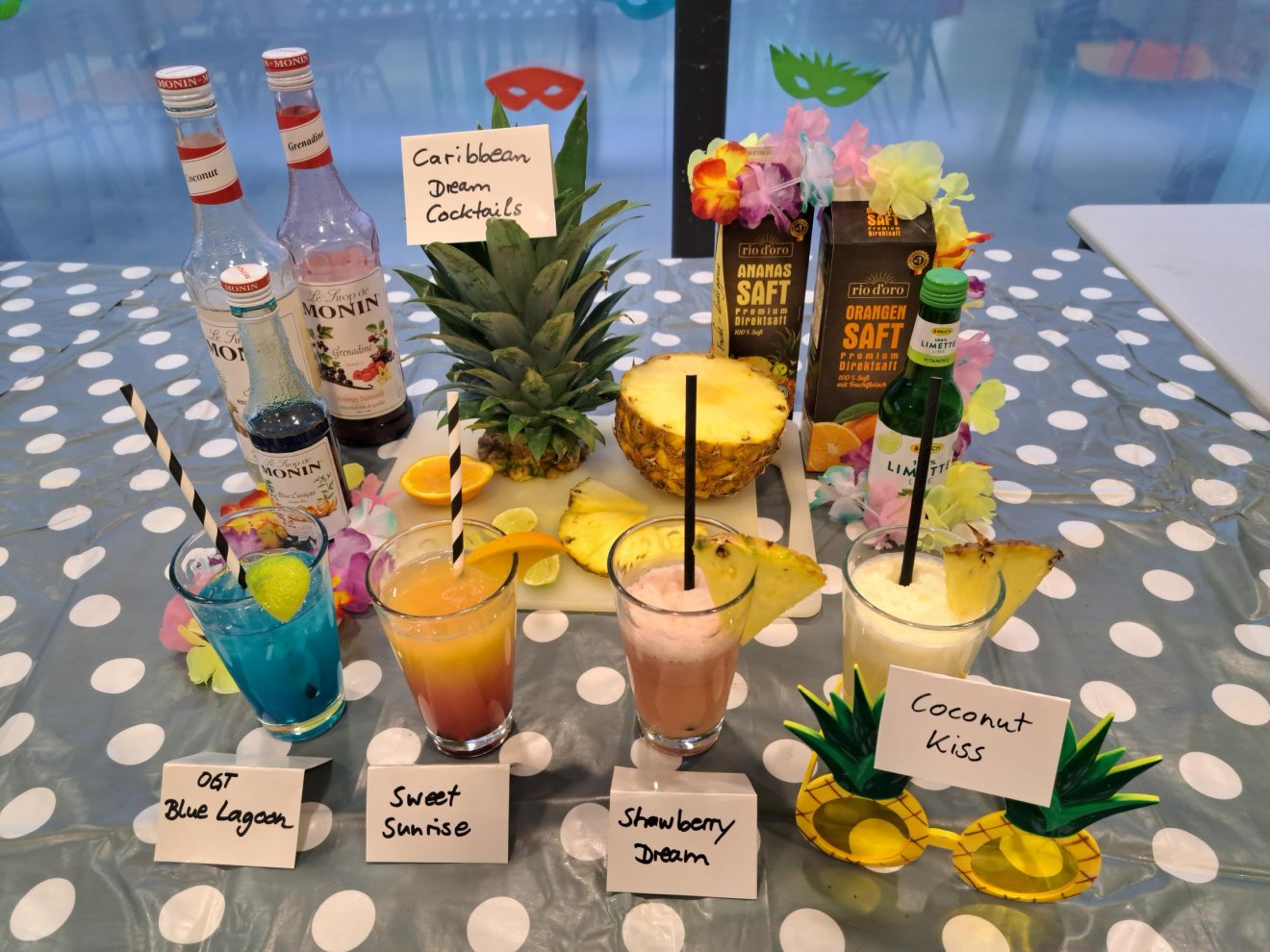 Besonders gut besucht war die Cocktailbar, in der alkoholfreie Caribbian Dream Cocktails zubereitet und getrunken wurden. Viel Spaß hatten die Kinder beim Beantworten von Quizfragen rund um die Kontinente, beim Bemalen von Taschen nach Aboriginal Art und beim Backen und Verzieren bunter Faschingsplätzchen.