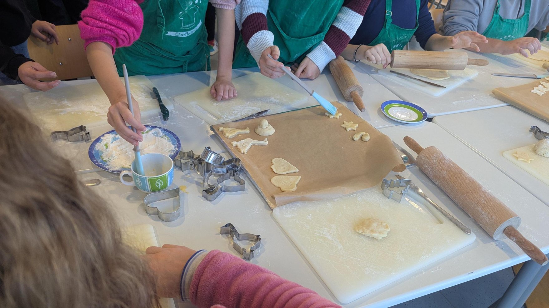 Anlässlich des Martinstags begann für die Schülerinnen und Schüler der OGTS am 10. und 11.11.2025 die diesjährige Backsaison. Unter dem Motto „Sonne, Mond und Sterne“ entstanden leckere Plätzchen. Dabei durften auch Martinsgänse aus Plätzchenteig nicht fehlen.