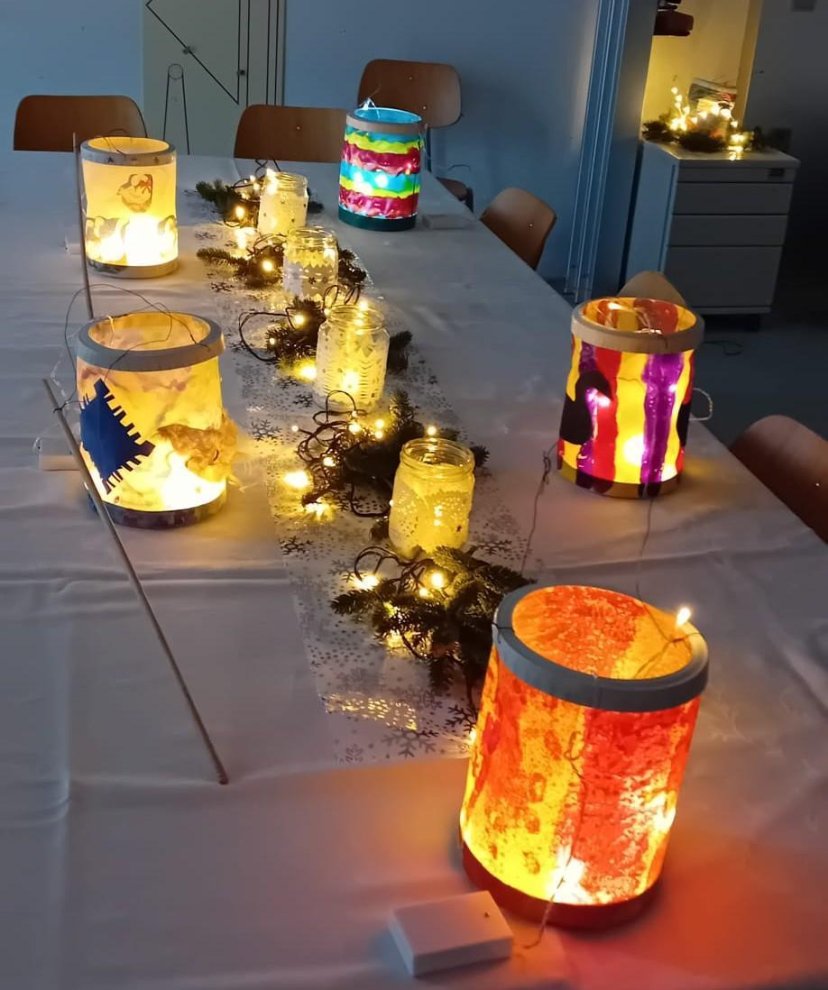 Während Frau Hepting die Geschichte „Ben und Clara teilen das Licht“ vorlas, erleuchteten die Kinder nacheinander fünf Laternen. Die Kinder teilten jedoch nicht nur das Licht, sondern – zu ihrer besonderen Freude- auch Lebkuchen.
